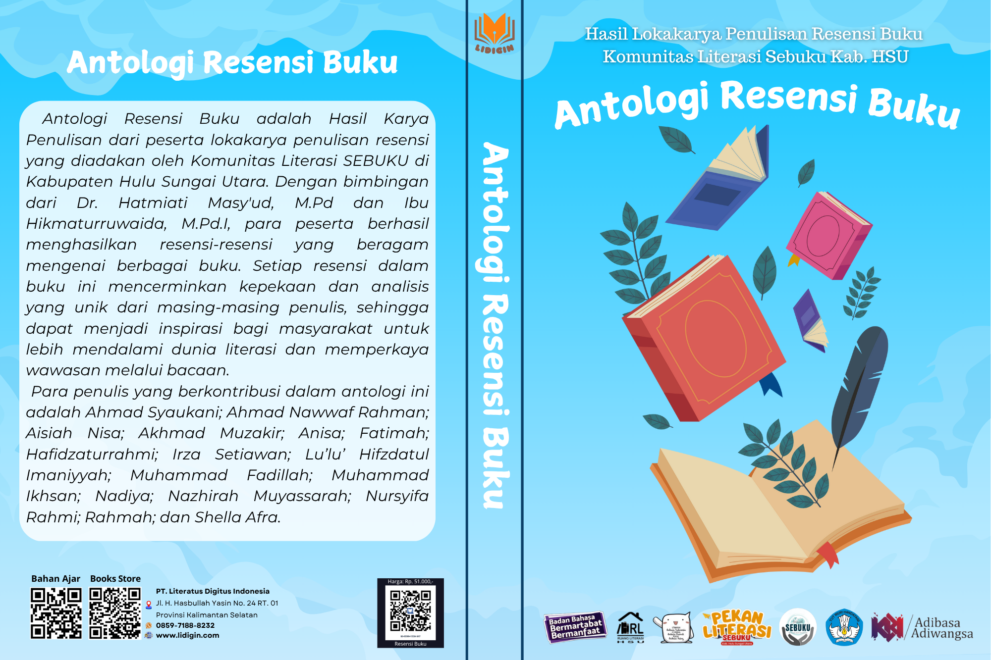 Antologi Resensi Buku adalah Hasil Karya Penulisan dari peserta lokakarya penulisan resensi yang diadakan oleh Komunitas Literasi SEBUKU di Kabupaten Hulu Sungai Utara. Dengan bimbingan dari Dr. Hatmiati Masy’ud, M.Pd dan Ibu Hikmaturruwaida, M.Pd.I, para peserta berhasil menghasilkan resensi-resensi yang beragam mengenai berbagai buku. Setiap resensi dalam buku ini mencerminkan kepekaan dan analisis yang unik dari masing-masing penulis, sehingga dapat menjadi inspirasi bagi masyarakat untuk lebih mendalami dunia literasi dan memperkaya wawasan melalui bacaan.