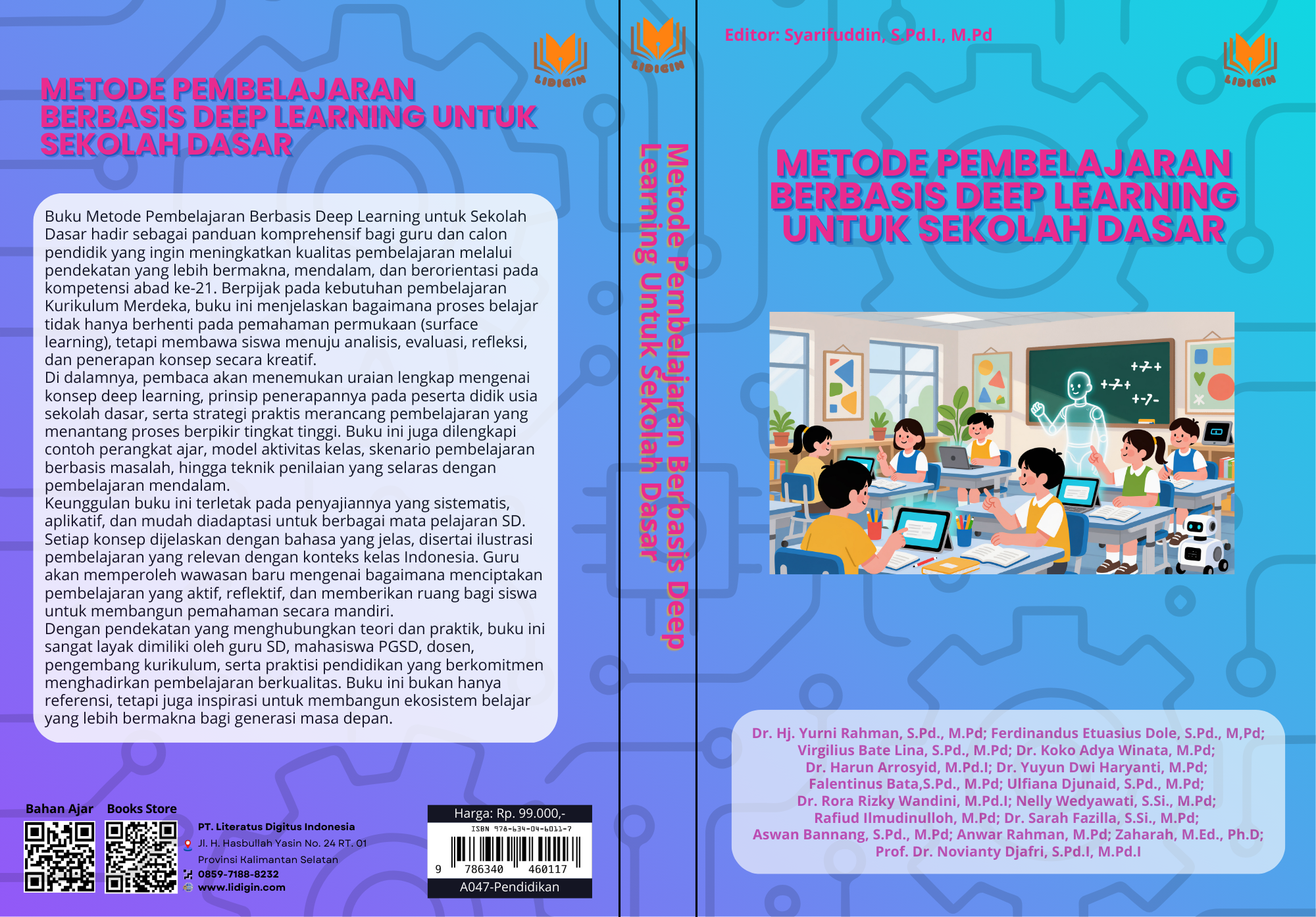 Buku Metode Pembelajaran Berbasis Deep Learning untuk Sekolah Dasar hadir sebagai panduan komprehensif bagi guru dan calon pendidik yang ingin meningkatkan kualitas pembelajaran melalui pendekatan yang lebih bermakna, mendalam, dan berorientasi pada kompetensi abad ke-21. Berpijak pada kebutuhan pembelajaran Kurikulum Merdeka, buku ini menjelaskan bagaimana proses belajar tidak hanya berhenti pada pemahaman permukaan (surface learning), tetapi membawa siswa menuju analisis, evaluasi, refleksi, dan penerapan konsep secara kreatif.