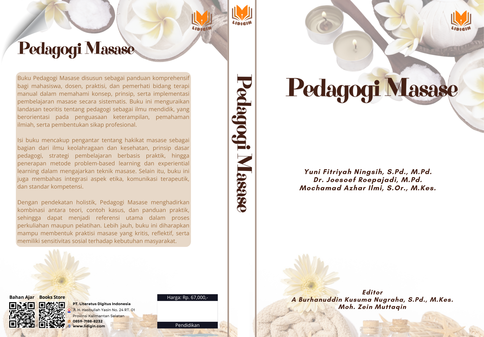 Buku Pedagogi Masase disusun sebagai panduan komprehensif bagi mahasiswa, dosen, praktisi, dan pemerhati bidang terapi manual dalam memahami konsep, prinsip, serta implementasi pembelajaran masase secara sistematis. Buku ini menguraikan landasan teoritis tentang pedagogi sebagai ilmu mendidik, yang berorientasi pada penguasaan keterampilan, pemahaman ilmiah, serta pembentukan sikap profesional.